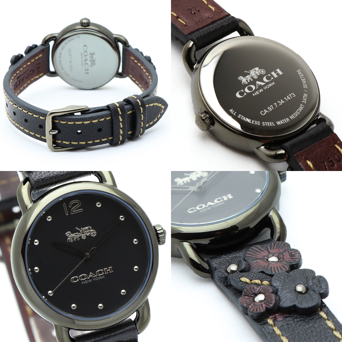 COACH コーチ 14502816 レディース レディス アナログ ウォッチ 女性用 腕時計 Delancey デランシー フローラル アップリケ ブラック 黒色 フラワー 花柄 レザーベルト ビジネス カジュアル ファッション