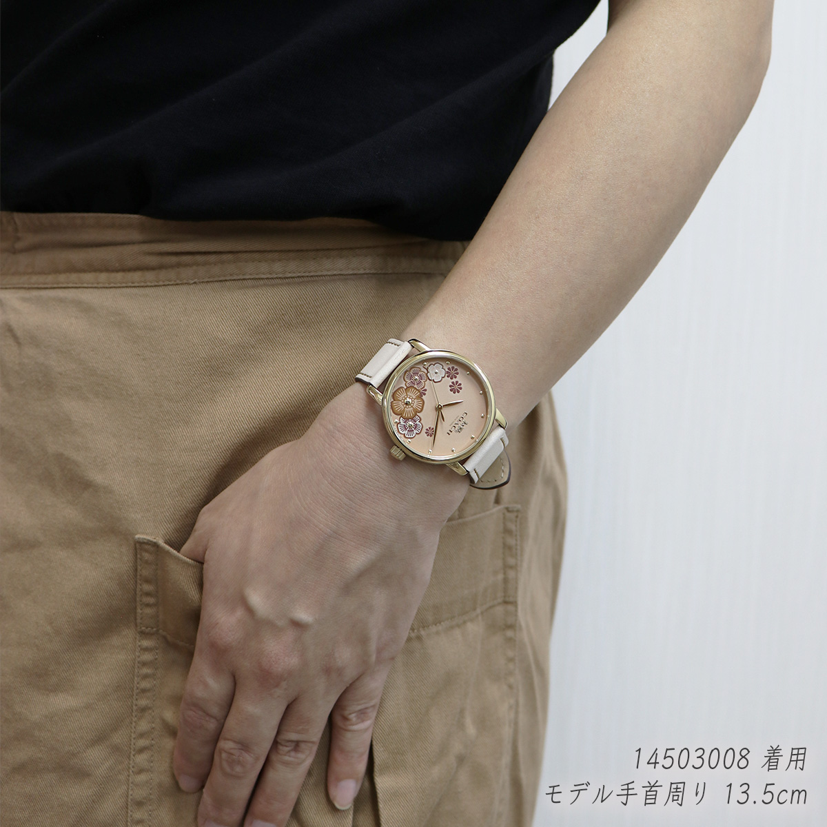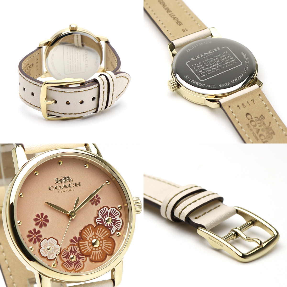 COACH コーチ レディース レディス アナログ ウォッチ 女性用 腕時計 14503008 Grand グランド ピンクベージュ ゴールド フラワー 花柄 ホワイト レザーベルト ビジネスウォッチ カジュアル ファッション