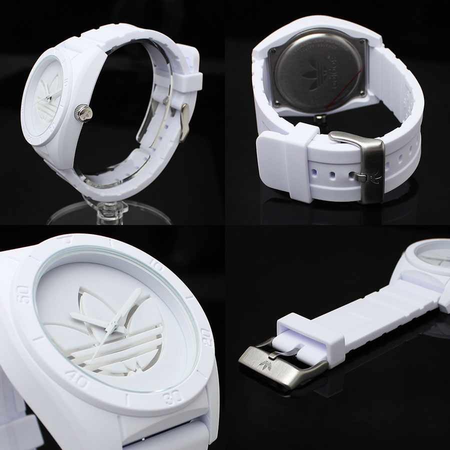 ベーシックかつシンプルなデザインでロングセラーを記録しているアディダスの超人気スポーツウォッチ「SANTIAGO サンティアゴ」シリーズより、耐久性と装着感を重視したステンレス&シリコンラバーモデルが登場。文字盤の12時位置にお馴染みの「三つ葉マーク」を配置した大ヒットモデル。視認性の高い三針仕様、柔らかく装着感抜群のシリコン素材、スポーツから日常生活まで安心してお使いいただける5気圧防水。長時間の着用でも疲れにくい軽量さや、男性でも女性でも丁度良いサイズも魅力的です。マラソン、ジョギング、ジム、部活、サッカー、フットサル、バスケットボール、ゴルフ、野球、テニス、バドミントン、スキー、スノーボードなど幅広いスポーツから、キャンプ、釣り、登山などアウトドアでも活躍するオールラウンドウォッチ。サッカーワールドカップをはじめ、世界中のアスリート、そしてスポーツをサポートするアディダス。ブランドコンセプトである「IMPOSSIBLE IS NOTHING 不可能なことは何もない」という力強い言葉の通り、アディダスの中でもよりクオリティの高いパフォーマンスを実現した「SANTIAGO サンティアゴ」。当店オススメの逸品です。