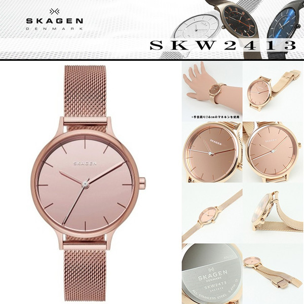 <製品特性:SKAGEN SKW2433> モダンでシンプルで美しい。 カジュアルウォッチファンからビジネスマンまで、幅広い層から絶大な人気を誇る北欧デンマーク生まれのウォッチブランド「SKAGEN スカーゲン」からNEW MODEL「ANITA」が登場。 デンマーク語で「優美さ」を表すANITAコレクション。 女性らしいインデックスと、控えめながらデザインポイントとなるサブダイアルが特長です。 どのシーンにも適応したSKAGEN特有のウォッチです。 腕時計の本質を重視した製品には、北欧らしい機能的なモノづくり・明確なコンセプト・メッセージ性が凝縮している。 シャツやジャケットの袖口を邪魔することのない、僅か7mm「ウルトラスリム」設計の超薄型ケース、超軽量設計も人気の秘密。 長時間の装着でも、腕が疲れることはない。細部にまで行き届いた完成された機能美。 まさに、北欧デザインの極意である。 「デザインの美しさ品質の高さは、かならずしも高価である必要はない」というブランドコンセプトのもと、手ごろな価格でこのクオリティーを実現してしまった。 あの「グッドデザイン賞」を受賞したことで大絶賛を受け、さらなる注目を集めはじめたSKAGEN。日本が認めた、世界が認めた究極のデザインウォッチなのです。 機能 日本製クォーツ・アナログ表示 スモールセコンド 生活防水 [...]