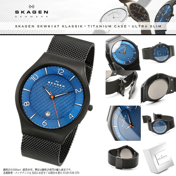 <製品特性:SKAGEN SKW6147> モダンでシンプルで美しい。 カジュアルウォッチファンからビジネスマンまで、幅広い層から絶大な人気を誇る北欧デンマーク生まれのウォッチブランド「SKAGEN スカーゲン」。 腕時計の本質を重視した製品には、北欧らしい機能的なモノづくり・明確なコンセプト・メッセージ性が凝縮している。 シャツやジャケットの袖口を邪魔することのない、僅か8mm「ウルトラスリム」設計の超薄型ケース。 腕のラインに美しくフィットするしなやかなメッシュベルト。 66gという超軽量設計も人気の秘密。 長時間の装着でも、腕が疲れることはない。 細部にまで行き届いた完成された機能美。 まさに、北欧デザインの極意である。 「デザインの美しさ品質の高さは、かならずしも高価である必要はない」というブランドコンセプトのもと、驚くべき事に、何と1万円台の手ごろな価格でこのクオリティーを実現してしまった。 あの「グッドデザイン賞」を受賞したことで大絶賛を受け、さらなる注目を集めはじめたSKAGEN。日本が認めた、世界が認めた究極のデザインウォッチなのです。 <機能> 基本時計(三針仕様) 3気圧防水 ミネラルクリスタルガラス ベルトタイプ:メッシュベルト(サイズ調整可能) [...]