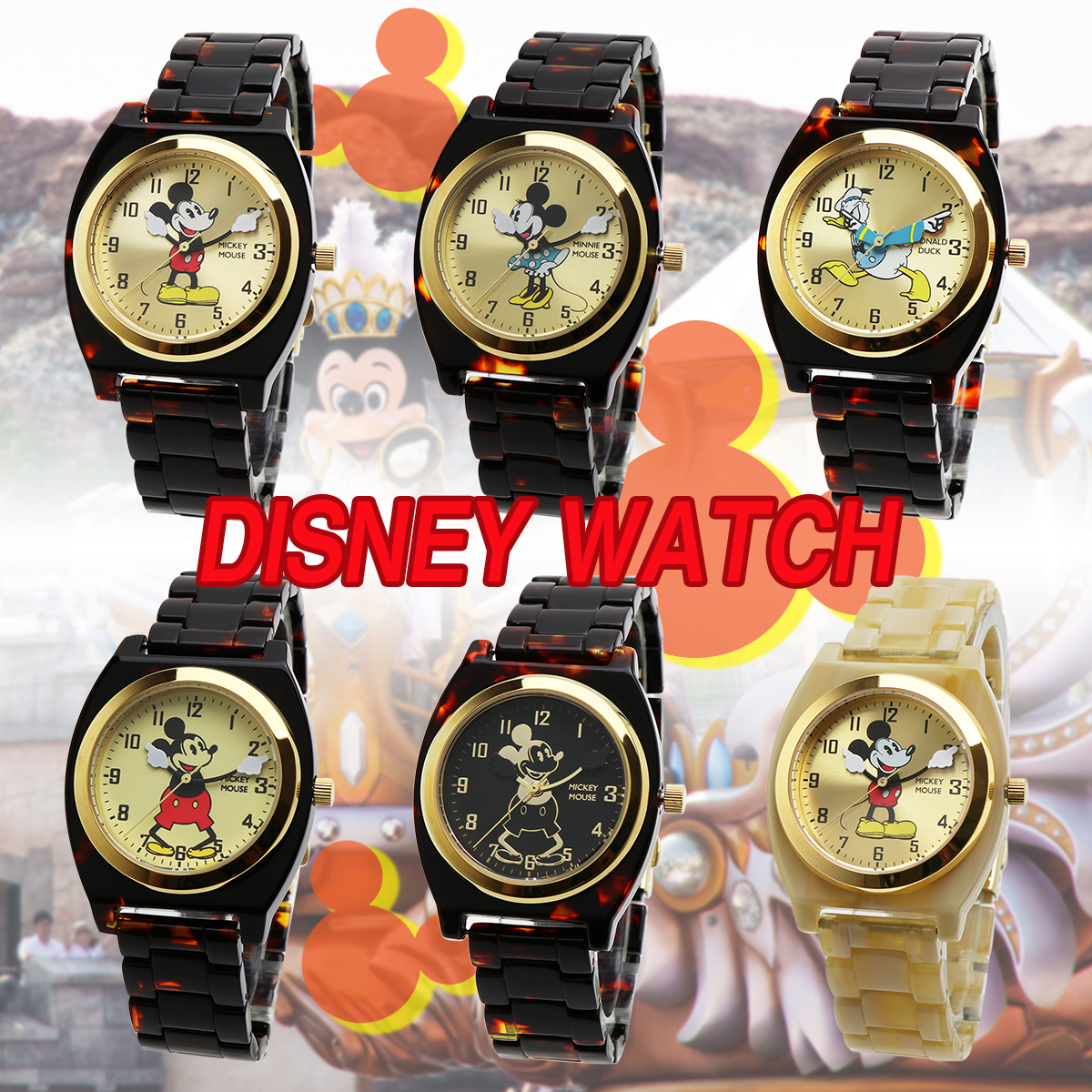 Disney ディズニー 腕時計 ベッコウ べっ甲 アナログ ウォッチ Mickey ミッキー Minnie ミニー Donald ドナルド ボーイズサイズ レディース 女性用 ブラウン ベージュ