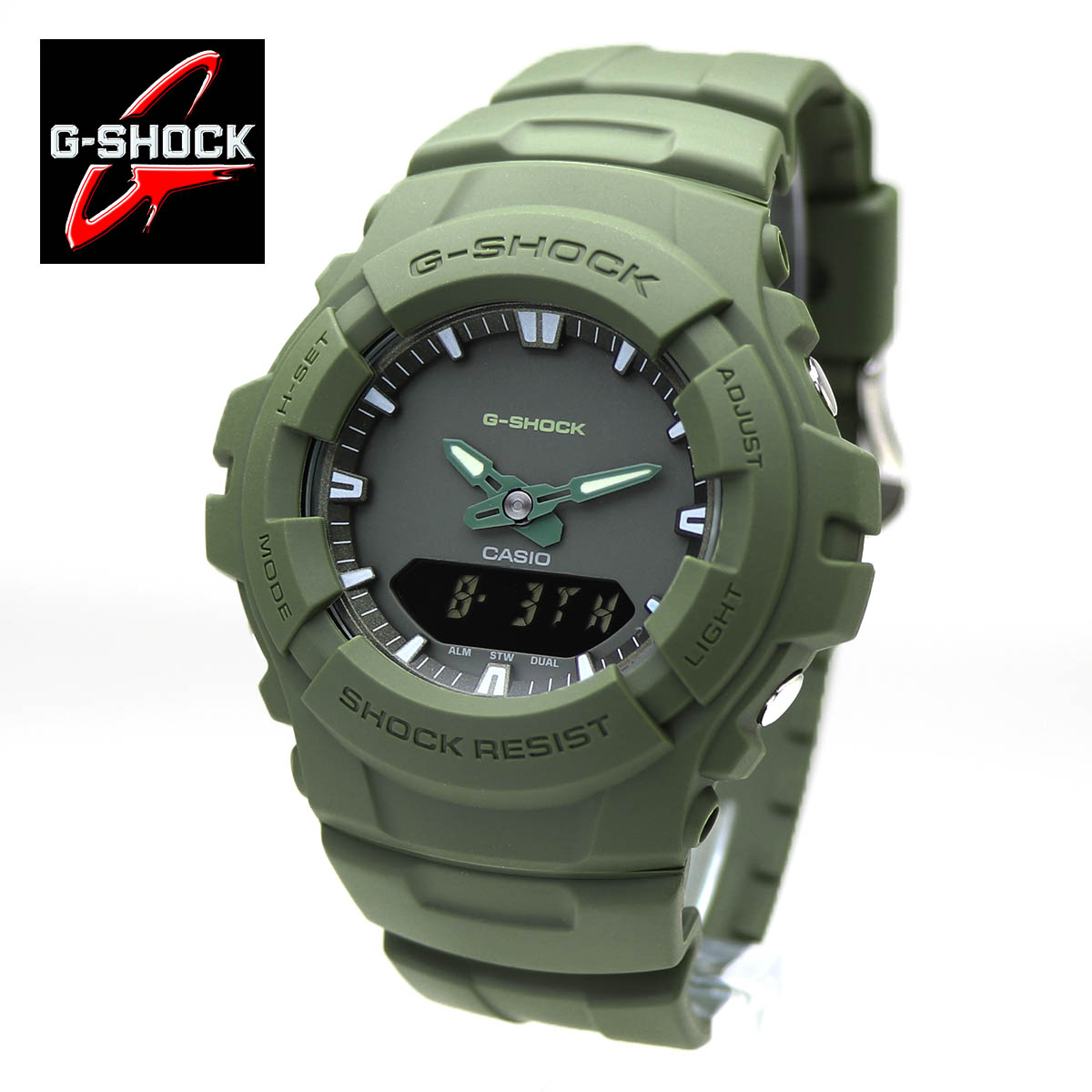 CASIO G-SHOCK ジーショック シンプル アナログ・デジタル G-100CU-3A ミリタリーグリーン つや消し 緑色 カーキグリーン 腕時計