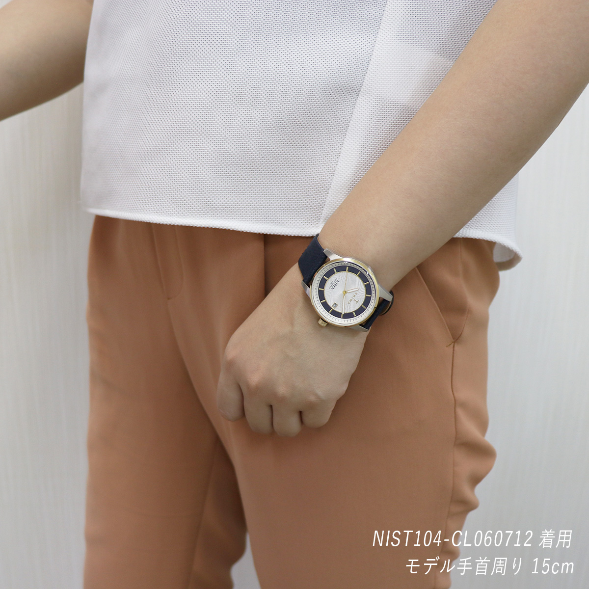 NIST104.CL060712…文字盤:ホワイト(白色)/ネイビー(紺色)/ゴールド(金色)&マットシルバーケース・ベルト:ネイビー(紺色)
